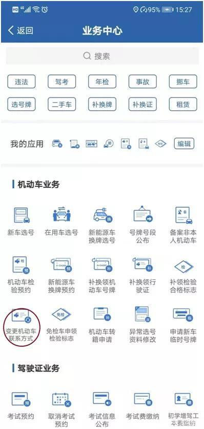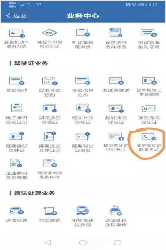 点击“驾驶证业务”变更驾驶证联系方式