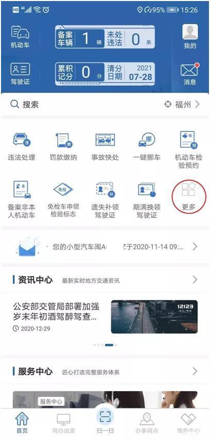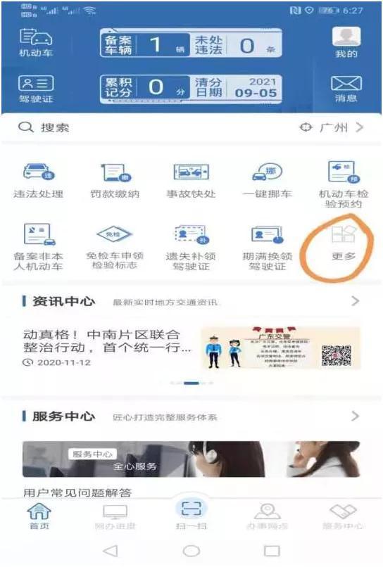 打开交管12123,点击“更多”