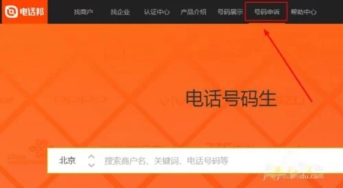进入电话邦首页后,点击上方导航栏中的“号码申诉”选项。