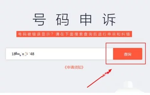 点击后,在页面下方输入需要申诉的手机号码,点击后方的“查询”按钮。