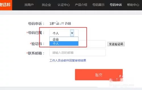 点击后,在号码类型中选择号码的归属是个人还是企业。个人和企业所提交的资料不同,可以根据号码的实际情况来选择。